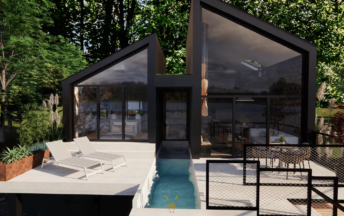 Confort et nature en harmonie. Matériaux haut de gamme, design éco-responsable, vues imprenables sur le plan d'eau.